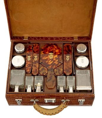 As much as I like Chanel, my heart belongs to Hermès since we share an initial. Although these Crocodile suitcases that were posted on Luxist don't have an H on them, they still have me seriously swooning! They were made in the 1930's for Karen Blixen who wrote Out of Africa under the name Isak Dinesen. Hermès unearthed them in their archives and they think that since they were never used they must never have been sent to her in Kenya. The sterling silver and tortoiseshell pieces are engraved with a crown and the initials DBF which stands for Dineson Blixen-Finecke, a combination of her maiden and married names. If you also happen to have the same initials, word has it that they can be yours for the right price. I'd actually be willing to change my initials to own such beautiful specimens of craftsmanship! They certainly put most people's beat up roller bags to shame. But, as we all know, travel is definitely not what it used to be. Le sigh."The entire being of a woman is a secret which should be kept” - Isak Dinesen